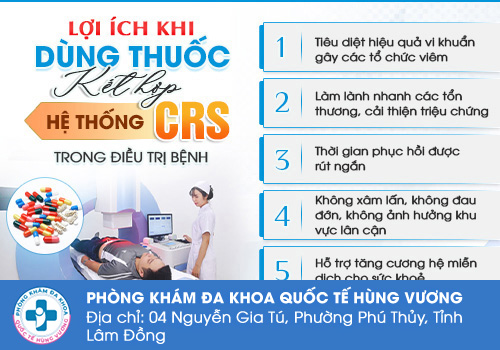 Hỗ trợ điều trị viêm đường tiết niệu bằng công nghệ CRS: Áp dụng cho trường hợp viêm nhiễm do vi khuẩn, nấm, tái phát nhiều lần... Kết hợp vật lý trị liệu, chiếu điện cao tần trực tiếp vào tận ổ bệnh để tiêu diệt vi khuẩn và làm lành những tổn thương do viêm, an toàn, không biến chứng.