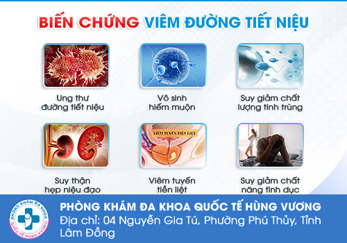 Phòng Khám Đa Khoa Quốc Tế Hùng Vương số 4 Nguyễn Gia Tú, P. Phú Thuỷ, Tỉnh Lâm Đồng – Tự hào là địa chỉ chuyên điều trị bệnh tiết niệu chất lượng cao. Sự Uy tín – Chuyên nghiệp – Tận tâm đã giúp phòng khám vinh dự được đông đảo bệnh nhân tin tưởng lựa chọn. Với quy trình nhanh gọn, các bác sĩ chuyên khoa giỏi cùng cơ sở vật chất hiện đại, máy móc, thiết bị y tế tiên tiến cho kết quả nhanh, chính xác.